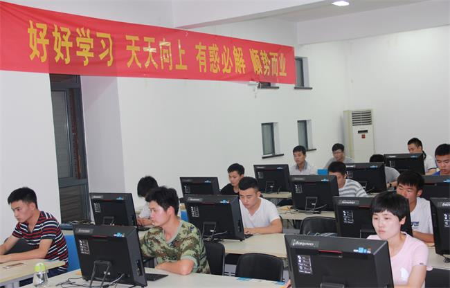 7月4日晚,歙縣青創(chuàng)職業(yè)學(xué)校電教室內(nèi)燈光明亮,參加全縣退役士兵職業(yè)技能培訓(xùn)班的小伙子們精神抖擻、興致盎然,“好好學(xué)習(xí) 天天向上 有惑必解 順勢而業(yè)”的大紅標(biāo)語也格外醒目。學(xué)員們在白天理論教學(xué)的基礎(chǔ)上,利用晚上進(jìn)行上機(jī)實(shí)際操作,鞏固提升所學(xué)知識,相得益彰???,他們學(xué)得多認(rèn)真啊!