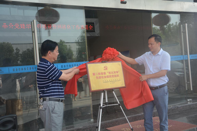 會議首先為金信財稅黨支部獲得的安徽省第二批“雙比雙爭”先進(jìn)社會組織黨組織榮譽進(jìn)行揭牌。縣委組織部副部長、非公工委書記吳堅、徽城鎮(zhèn)黨委書記張贈共同為該獎牌揭開大紅的綢布并分別作重要講話,這也是我縣黨組織獲得的第三塊省級黨建榮譽獎牌。