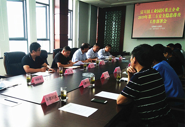 富堨鎮(zhèn)工業(yè)園區(qū)重點(diǎn)企業(yè)2019年第三方 安全隱患排查工作部署會(huì)在我公司召開
