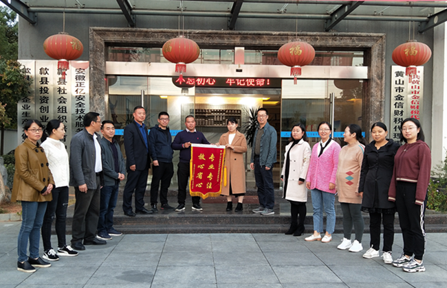 2019年10月28日,休寧縣五五零五農(nóng)業(yè)科技有限公司總經(jīng)理陳旭輝帶著“專業(yè)專注、放心省心”標(biāo)語(yǔ)的錦旗來(lái)到我金信財(cái)稅公司,對(duì)我公司為其指導(dǎo)財(cái)稅管理、建立賬務(wù)的保姆式服務(wù)及服務(wù)會(huì)計(jì)楊鳳琴表示感激之情。當(dāng)日,總經(jīng)理胡海鋒,副總經(jīng)理汪銘及相關(guān)部門負(fù)責(zé)人一同接受錦旗。