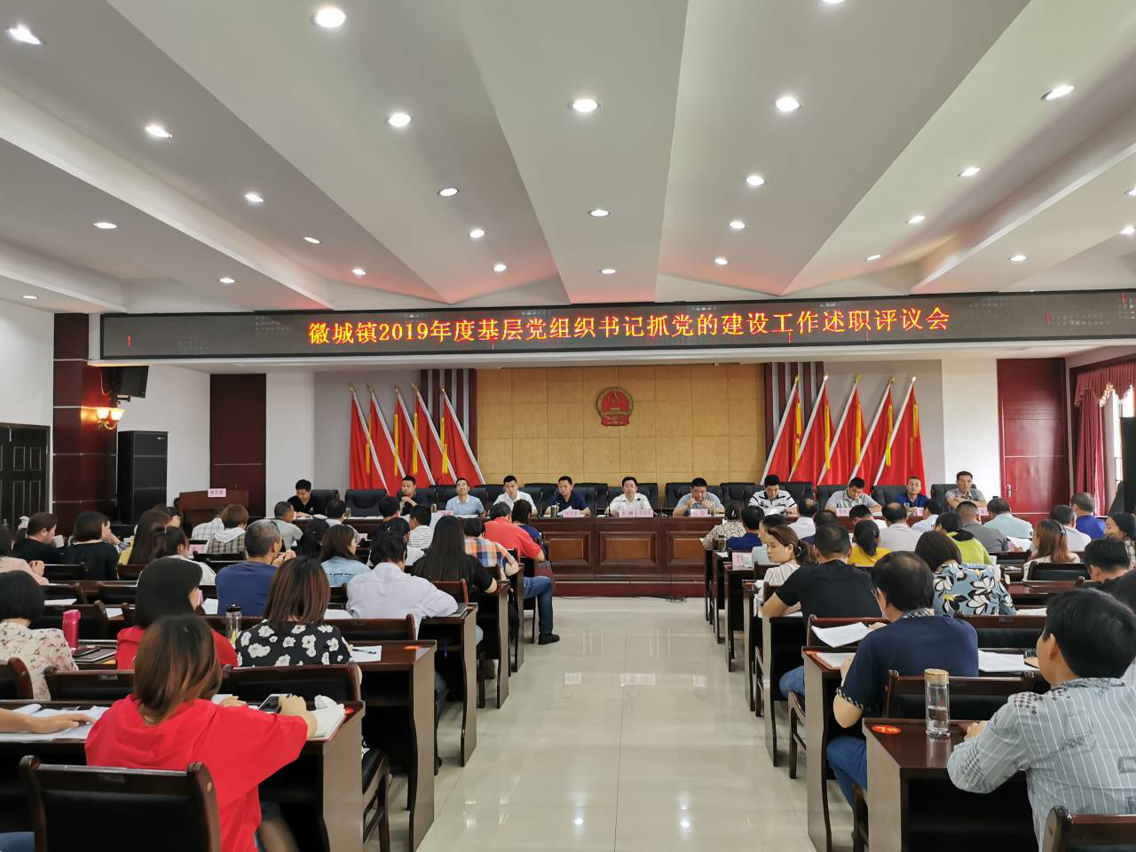 2020年6月5日,徽城鎮(zhèn)基層黨組織書記抓黨的建設(shè)工作述職評議會隆重召開?;粘擎?zhèn)黨政領(lǐng)導(dǎo)干部、各村(居)書記和黨務(wù)工作者,部分非公企業(yè)和社會組織黨組織書記一百多人參加會議。