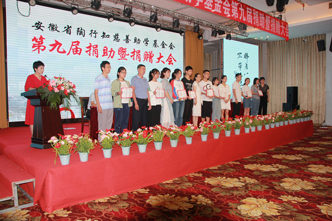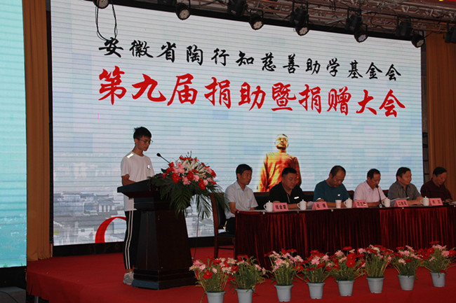 2020年9月11日,安徽省陶行知慈善助學(xué)基金會第九屆捐助暨捐贈大會在歙縣飯店隆重舉行。縣委副書記、組織部長劉文及陶行知基金會全體理事、愛心捐贈人士、受助學(xué)生共200多人參加會議。當(dāng)日,共向應(yīng)屆和歷屆大學(xué)生149位捐助愛心款項(xiàng)近55萬元。同時,又收到社會各界的愛心捐助18萬余元。