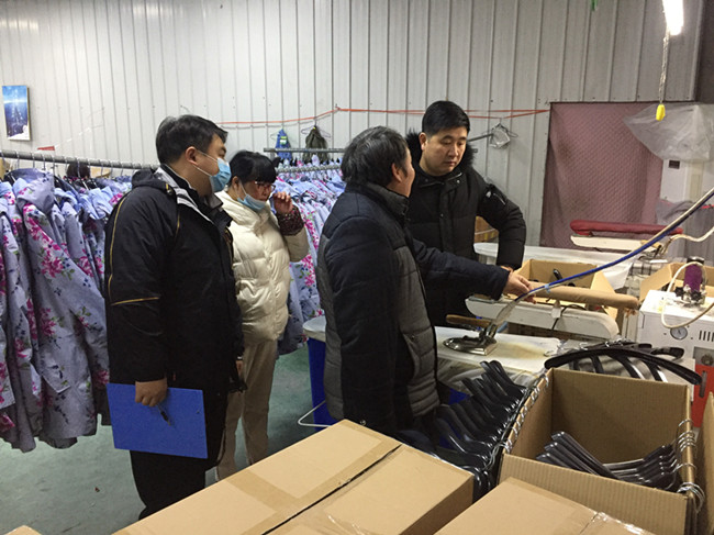 (上圖為富堨鎮(zhèn)政府副鎮(zhèn)長朱超(中)帶隊(duì)在華邦公司車間檢查。)