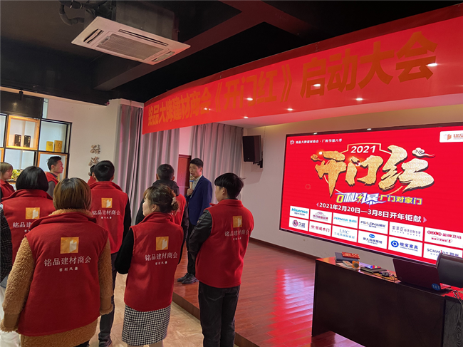 新年伊始,萬(wàn)象更新。加油鼓勁,再創(chuàng)輝煌!2021年2月20日,銘品大牌建材商會(huì)開(kāi)展的《開(kāi)門紅》專題培訓(xùn)大會(huì)在歙縣青創(chuàng)眾創(chuàng)空間順利舉辦,來(lái)自銘品商會(huì)的40余名營(yíng)銷人員到場(chǎng)參訓(xùn)。