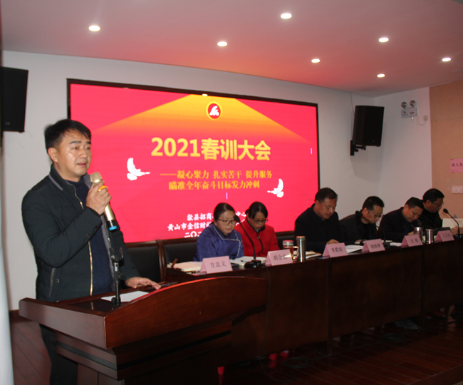 2021年2月26日,中心召開2021年度全體職工春訓(xùn)大會,會議首先對2020年度優(yōu)秀班組和個人進行表彰,以鼓勵他們在企業(yè)服務(wù)、中心發(fā)展方面做出的巨大貢獻。財稅服務(wù)二組、項目發(fā)展部獲得“優(yōu)秀班組獎”,李霞娟、曾笑青獲得“優(yōu)秀經(jīng)理(組長)獎”,楊鳳琴、胡武星、柯淼、王衛(wèi)兵、李思凱等5人獲得“優(yōu)秀員工獎”。中心主任胡海鋒、副主任汪銘為優(yōu)秀班組和個人頒發(fā)獎狀和獎金。