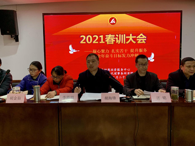 為更好地總結(jié)回顧2020年工作成效,謀劃和布局2021年各項(xiàng)工作,明確目標(biāo),細(xì)化措施,2月26日,招商中心、金信財稅2021春訓(xùn)大會在中心一樓眾創(chuàng)空間如期舉行。公司全體員工60人參加會議,中心主任胡海鋒親自主持會議。