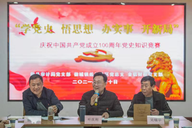 2021年3月10日,徽城鎮(zhèn)金信財稅1+X黨建共建圈為紀念中國共產黨成立100周年,與歙縣審計局黨支部、練江社區(qū)黨總支、玲玲物業(yè)黨支部、樂億教育黨支部、昌仁醫(yī)院黨支部、天正達財稅黨支部、振超彩印黨支部聯(lián)合開展“學黨史 悟思想 辦實事 開新局 ”黨史知識競賽活動。各支部40余名黨員和發(fā)展對象、積極分子參與本次活動?;顒佑伸h審計局黨支部葉慶利同志主持。