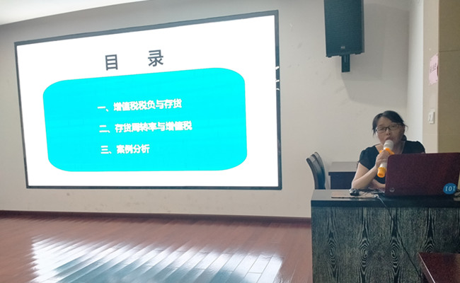 李霞娟是財(cái)稅代理部的領(lǐng)頭羊,也是我地資深中級(jí)會(huì)計(jì)師,從事財(cái)務(wù)代理工作多年,有著豐富的工作經(jīng)驗(yàn)和操作能力,她以深厚的財(cái)稅專業(yè)知識(shí)基礎(chǔ)得到客戶的高度認(rèn)可和政府相關(guān)部門的肯定。此次分享她主要圍繞增值稅稅負(fù)與存貨,存貨周轉(zhuǎn)率與增值稅之間的關(guān)系,并結(jié)合實(shí)際案例進(jìn)行詳細(xì)講解。經(jīng)過李經(jīng)理的詳細(xì)介紹,參與分享人員對(duì)“增值稅與存貨”之間存在的關(guān)系有了更加深入的了解,提高了對(duì)此類數(shù)據(jù)的敏感性,有助于更好的為企業(yè)提供服務(wù)。