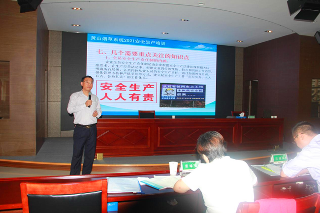 2021年10月15日,黃山市煙草專賣局(公司)企業(yè)安全生產(chǎn)培訓(xùn)班在市公司駐地順利舉辦。黃山市應(yīng)急管理局副局長(zhǎng)吳永杰作開班動(dòng)員講話,并就近期全國(guó)安全生產(chǎn)形勢(shì)進(jìn)行通報(bào),對(duì)行業(yè)相關(guān)工作作出部署和要求。市局領(lǐng)導(dǎo)班子、局機(jī)關(guān)各職能部門及徽州皖韻酒店,各區(qū)縣局(營(yíng)銷部)負(fù)責(zé)人、安全生產(chǎn)管理人員近70余人參加培訓(xùn)。我安徽正億安全技術(shù)服務(wù)有限公司承擔(dān)培訓(xùn)內(nèi)容準(zhǔn)備和課程安排等工作。
