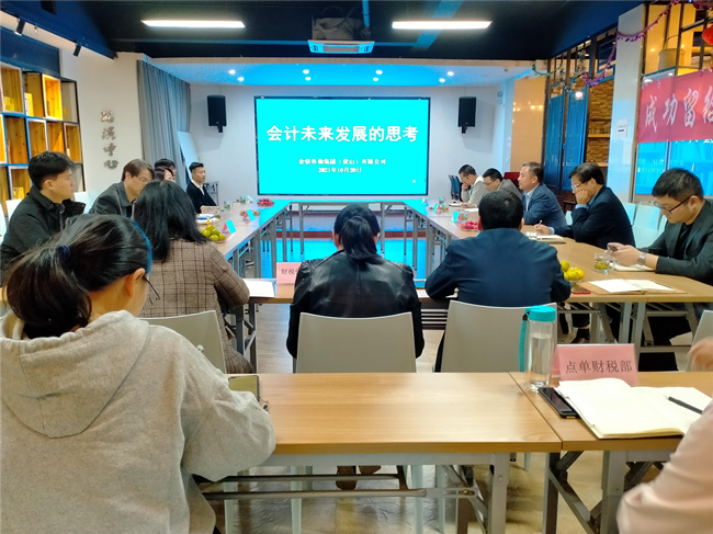 2021年10月20日,歙縣招商投資服務(wù)中心、金信財(cái)稅公司“會(huì)計(jì)未來(lái)發(fā)展的思考”為題,邀請(qǐng)來(lái)我縣投資發(fā)展的臺(tái)灣客商林銘村博士一行,江蘇華瑞會(huì)計(jì)師事務(wù)所有限公司董事長(zhǎng)、注冊(cè)會(huì)計(jì)師王德瑞先生及其技術(shù)團(tuán)隊(duì)展開座談,探索分析企業(yè)財(cái)稅服務(wù)發(fā)展的趨勢(shì)、不同發(fā)展階段的需求以及如何提升專業(yè)水平和能力,更好的為企業(yè)提供服務(wù)。歙縣招商投資服務(wù)中心、金信財(cái)稅公司總經(jīng)理胡海鋒、副總經(jīng)理汪銘及各部門負(fù)責(zé)人參加座談。