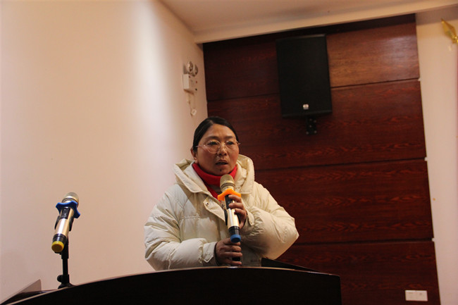 (上圖為優(yōu)秀班組負(fù)責(zé)人胡金仙發(fā)表獲獎感言。)