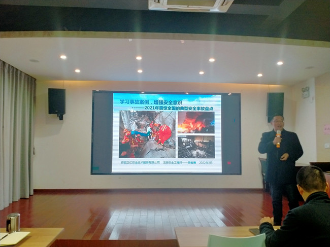 吳智勇注安師在安全生產(chǎn)培訓(xùn)及企業(yè)安全生產(chǎn)隱患排查、檔案建立等方面有著豐富的工作經(jīng)驗(yàn)。當(dāng)日,他主要圍繞2021年全國典型事故案例,重點(diǎn)講解燃?xì)獗ā⒒馂?zāi)、交通事故、坍塌等類別生產(chǎn)安全事故,并結(jié)合日常生產(chǎn)生活,提出關(guān)注的重點(diǎn)和預(yù)防措施。經(jīng)過吳智勇注安師的講解,參訓(xùn)人員安全生產(chǎn)意識(shí)進(jìn)一步提升,增強(qiáng)了應(yīng)急處置和事故防范的能力,對于日常生活和生產(chǎn)管理都有重大意義。