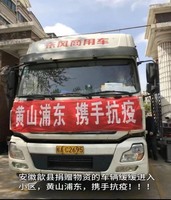 (圖為援滬生活物資車輛駛?cè)肷虾F謻|周家渡街道齊八居委會。)