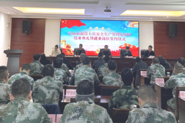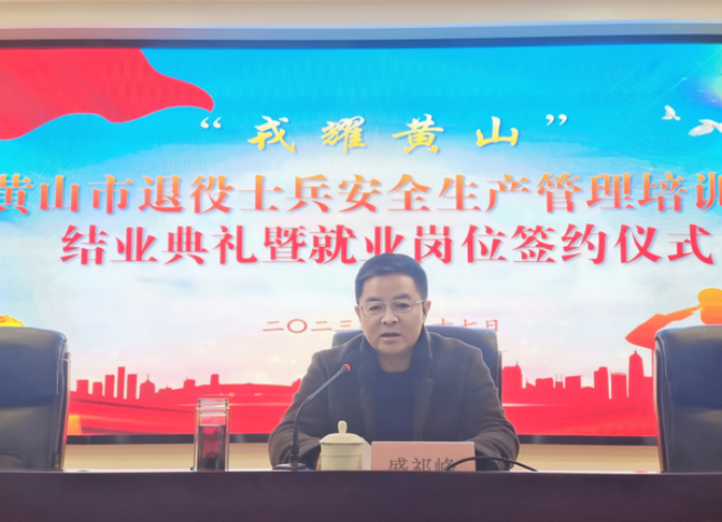 2月17日,“戎耀黃山”黃山市退役士兵安全生產管理培訓班結業(yè)典禮暨就業(yè)崗位簽約儀式在歙縣青創(chuàng)職業(yè)培訓學校舉辦。黃山市退役軍人事務局黨組書記、局長盛祁峰出席并講話,副局長朱樂華主持,歙縣應急管理局和各區(qū)縣退役軍人事務局領導參加活動。