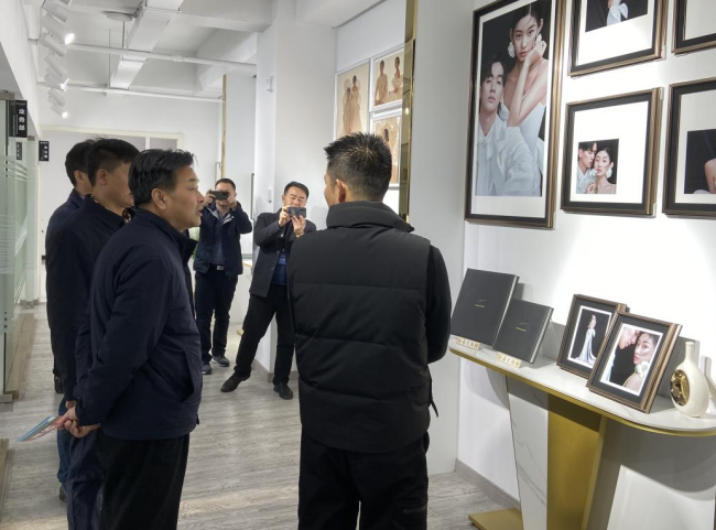隨后,領(lǐng)導(dǎo)一行人來到入駐基地發(fā)展的軍創(chuàng)企業(yè)善文相冊(cè)公司,該公司總經(jīng)理吳兆文熱情接待,他首先介紹了自己的創(chuàng)業(yè)歷程和企業(yè)產(chǎn)品,隨后帶領(lǐng)大家實(shí)地參觀生產(chǎn)流水線。作為一名退役軍人,吳兆文始終保持了軍人的嚴(yán)謹(jǐn)和部隊(duì)作風(fēng),退役后成立了善文相冊(cè)公司,形成了相片、視頻從拍攝到制作,再到包裝、銷售的業(yè)務(wù)模型。